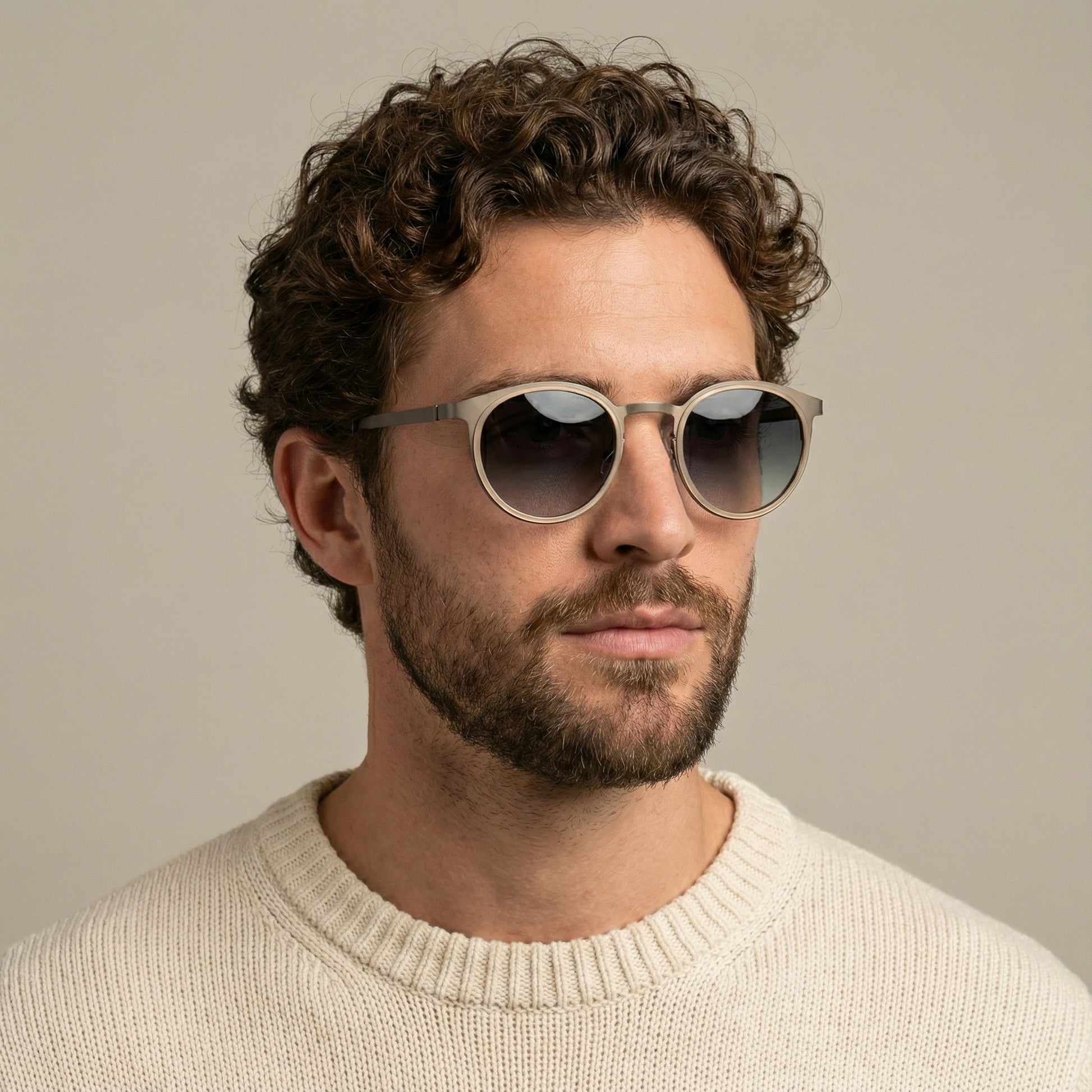 A lightweight titanium frame with refined lines and subtle curves, it offers a timeless silhouette that feels instantly familiar — like something that always belonged.