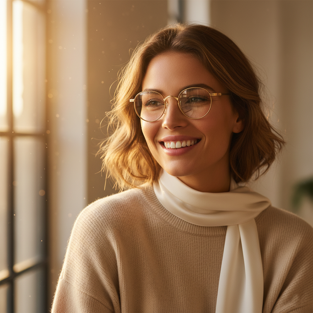 Our photochromic lenses adapt with grace — shifting through six elegant tones as light changes around you.From indoors to open air, your vision stays calm, your eyes protected.